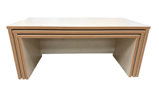 Die 3 Bodentische lassen sich platzsparend zusammenschieben und ist optimal um schnell einen Sitzkreis aufzubauen.