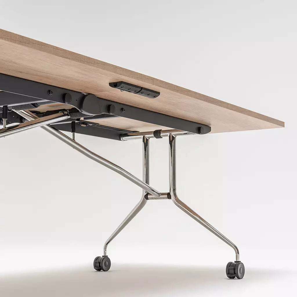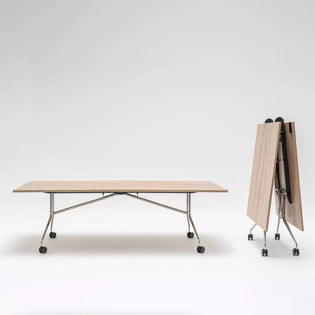 Der Konferenztisch "Kompakt" ist durch seine schnelle Wegklappfunktion geeignet in der Aula auch Mensa essen zu organisieren.
